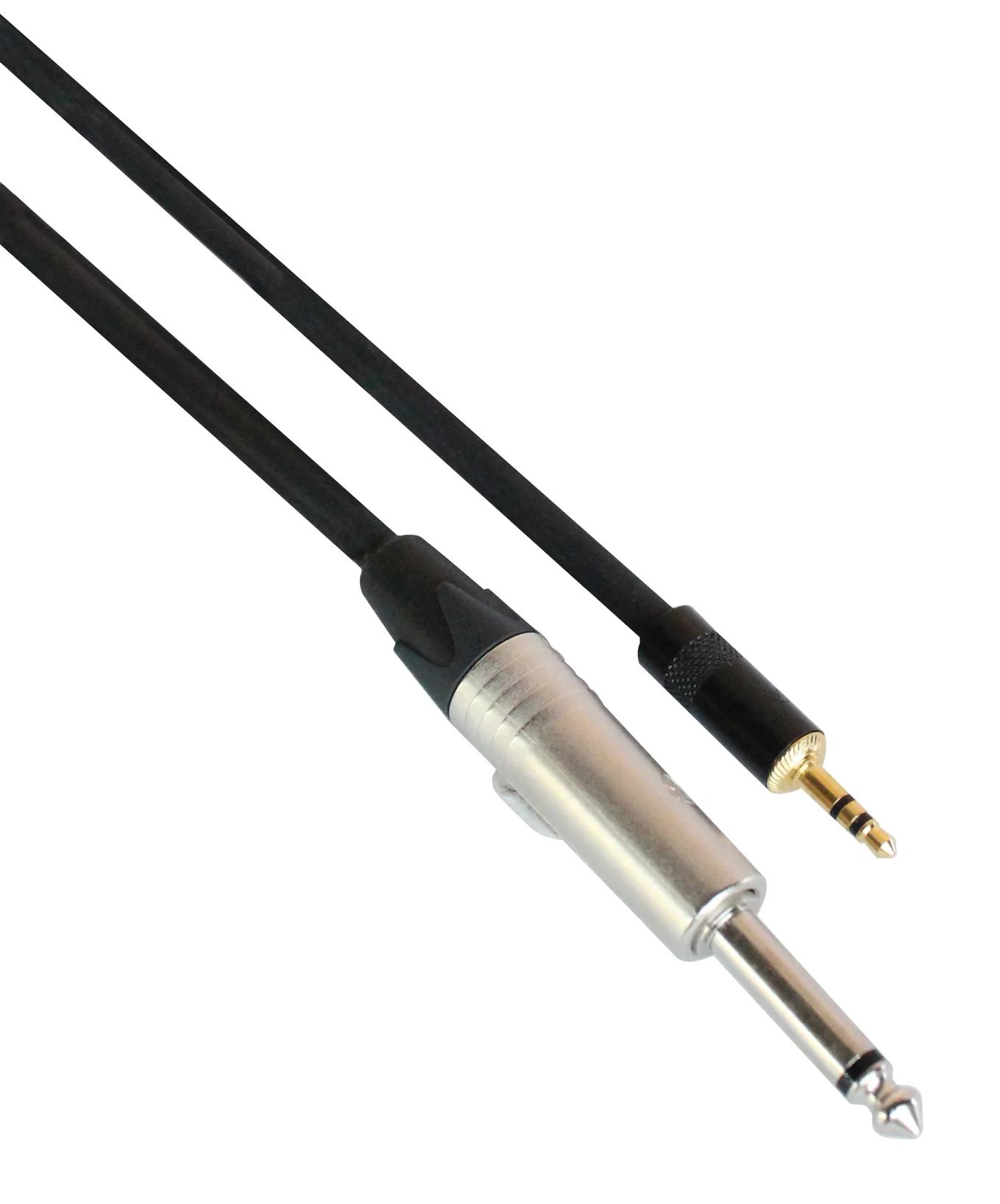 Tour Series 1/8" mini TRS to 1/4" phone cable, made with NK2/6 cable. For plugging your portable device into a mixer or di, with single channel summing.