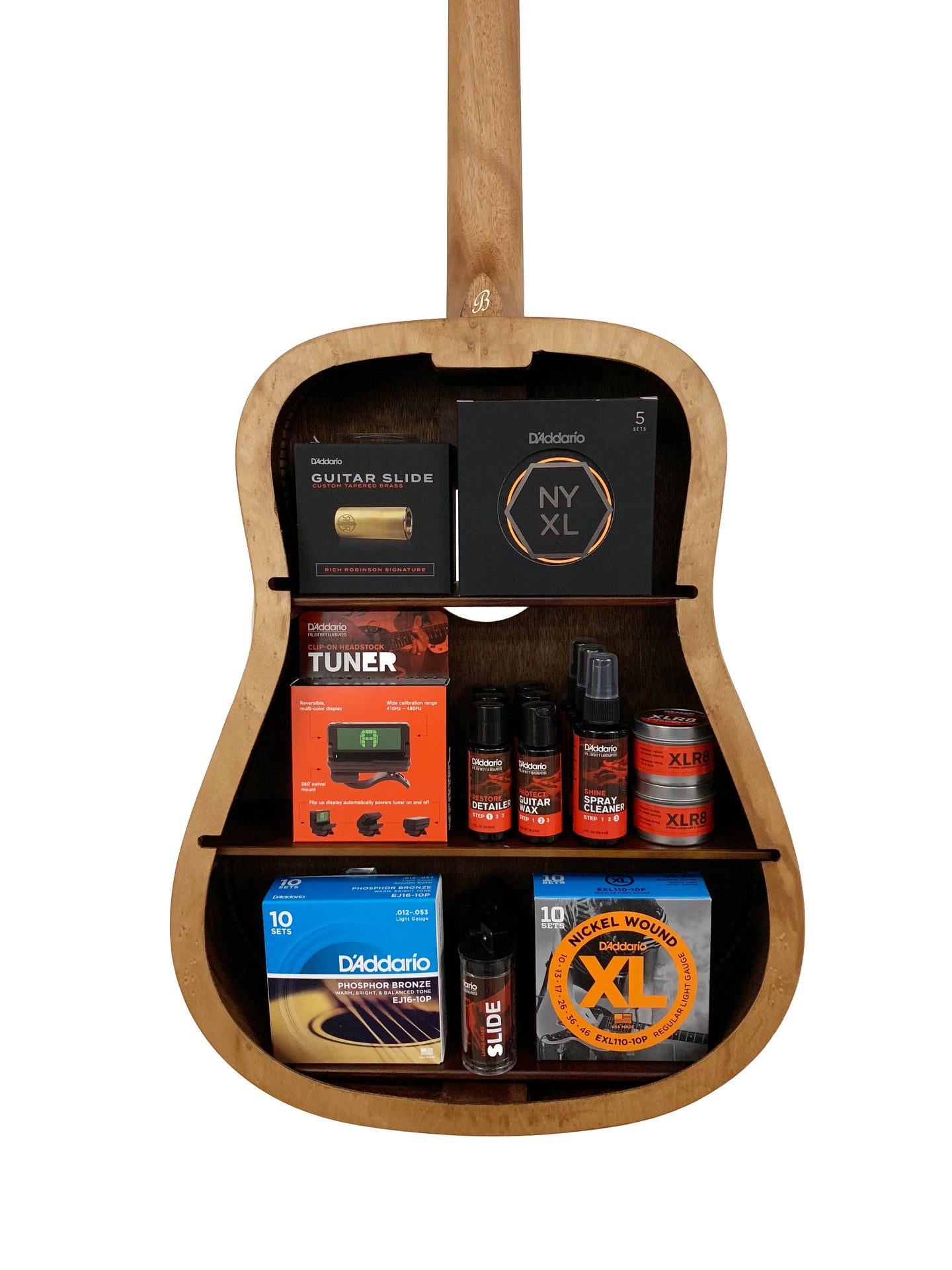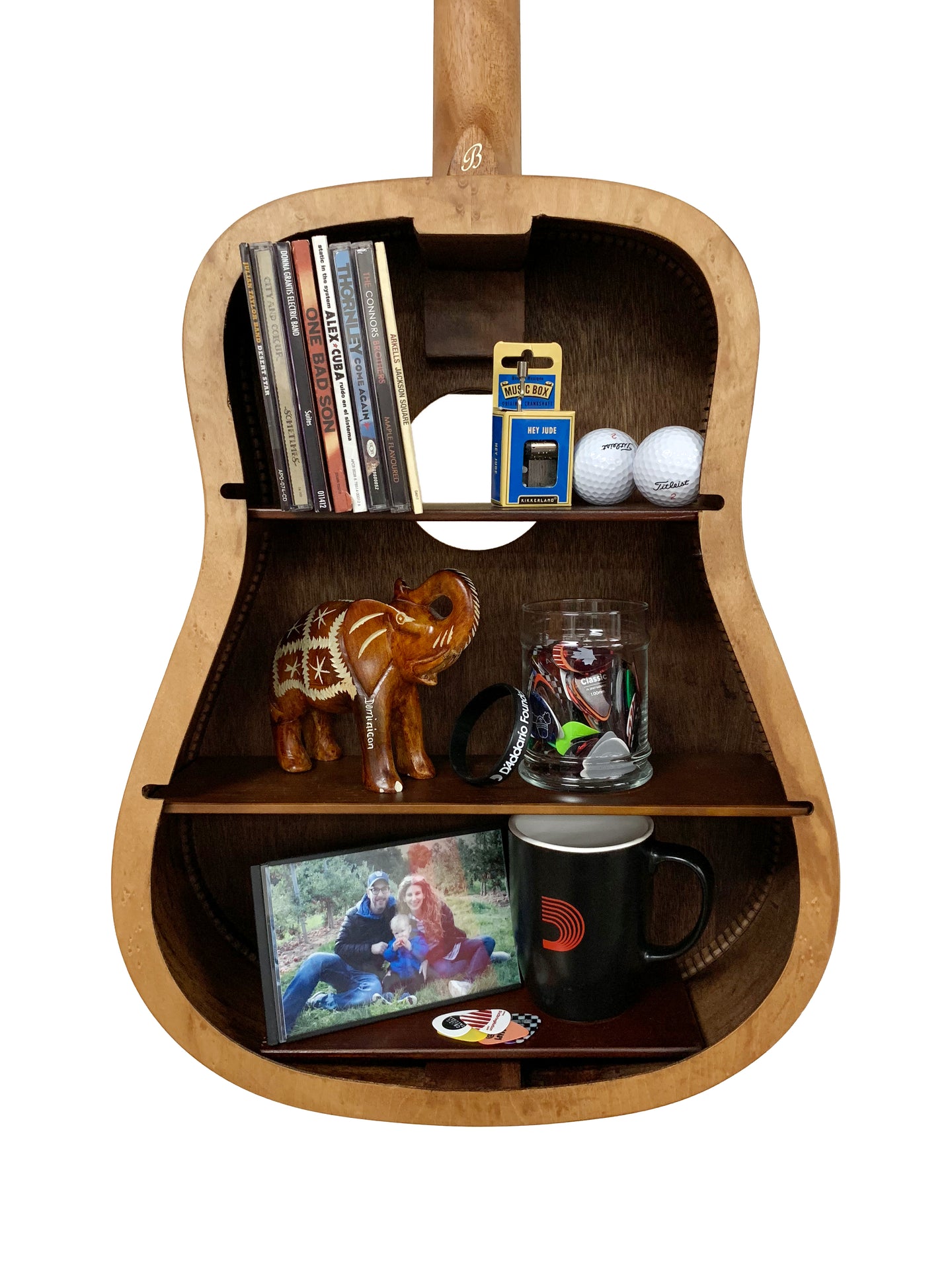 L'étagère pour guitare BeaverCreek est construite à partir de guitares réutilisées et des pièces de différentes marques et usines. Des cous tordus, des têtes de machines défectueuses et des défauts cosmétiques un chef-d'œuvre unique, accrocheur et fonctionnel. Le BeaverCreek Guitar Shelf convient à toutes les pièces et à tous les amateurs de musique. Ramener la vie à certaines parties «méconnues». Moins de déchets, plus d'espace de rangement!
