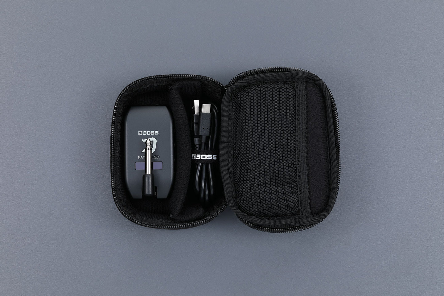 Rempli de sons BOSS premium pour guitare et basse, l'ampli casque KATANA:GO compact permet de jouer facilement avec de beaux sons durant les déplacements. Cette sacoche CB-KTNGO stylée et robuste protège votre KATANA:GO ainsi que son câble de recharge, une paire d'écouteurs et autres petits éléments.