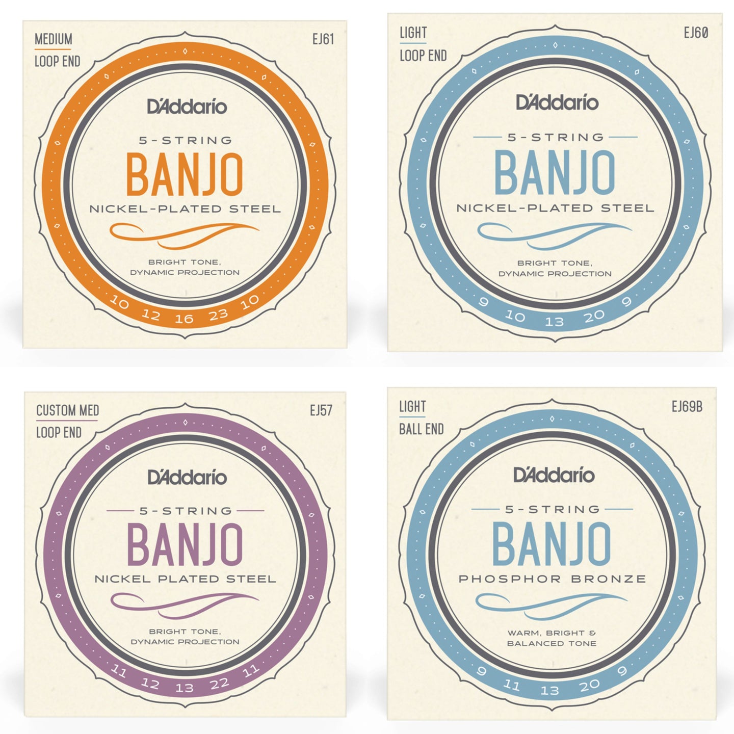 | EJ61 est un jeu de cordes de calibre moyen pour banjo à 5 cordes, utilisant un fil d'acier étamé à haute teneur en carbone avec une corde enroulée en acier nickelé. |