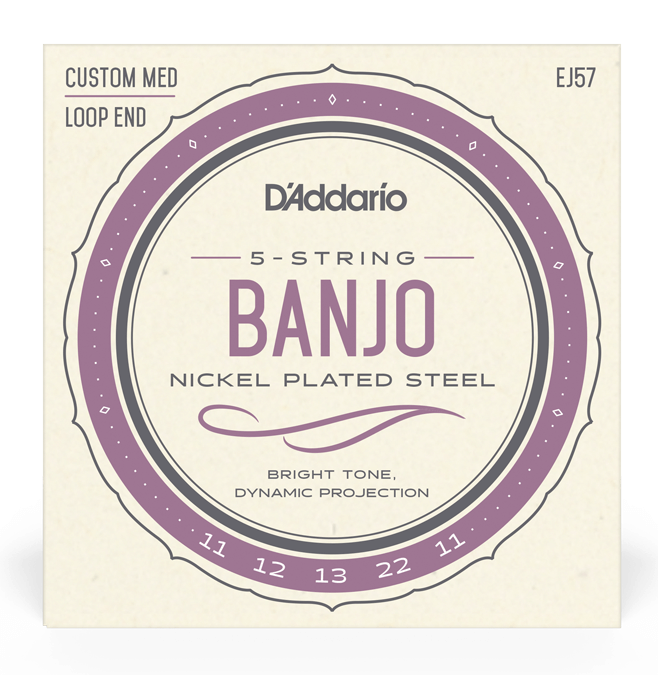 | EJ57 est un jeu de cordes de calibre moyen pour banjo à 5 cordes, utilisant un fil d'acier étamé à haute teneur en carbone avec une corde enroulée en acier nickelé. |