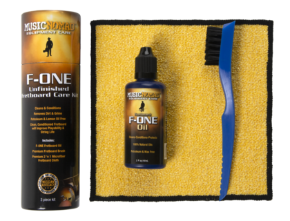 Une touche nettoyée et conditionnée améliorera non seulement la jouabilité et la durée de vie des cordes, mais prolongera la santé du bois de la touche non finie en l'empêchant de sécher et de se fissurer. Le kit d'entretien de la touche non finie F-ONE de MusicNomad contient tout ce dont vous avez besoin pour nettoyer et conditionner votre touche non finie. L'huile F-ONE est formulée à partir d'un mélange complexe des meilleures huiles d'arbres et de graines ultra raffinées pour nettoyer, conditionner et protéger votre touche. F-ONE ne contient pas d'extraits d'huile de citron, de cires, de distillats de pétrole, de silicone ou d'eau. Notre chiffon de touche en microfibre innovant 2 'n 1 ne ressemble à aucun autre. Un côté est doux pour une application et un nettoyage en douceur avec F-ONE, tandis que l'autre côté est conçu avec de petits épurateurs tissés dans le tissu pour pénétrer et enlever la saleté et la crasse accumulées sur la touche. Notre brosse spécialement conçue pour les frettes est l'outil parfait pour un nettoyage et un conditionnement de précision autour des frettes et des pores de bois plus profonds. Doté d'un design de poils "V-Cut" et d'un grattoir en plastique bonus, vous êtes entièrement prêt à donner à votre manche le traitement spa total qu'il mérite. C'est la qualité MusicNomad - élever la barre en matière d'entretien de l'équipement.