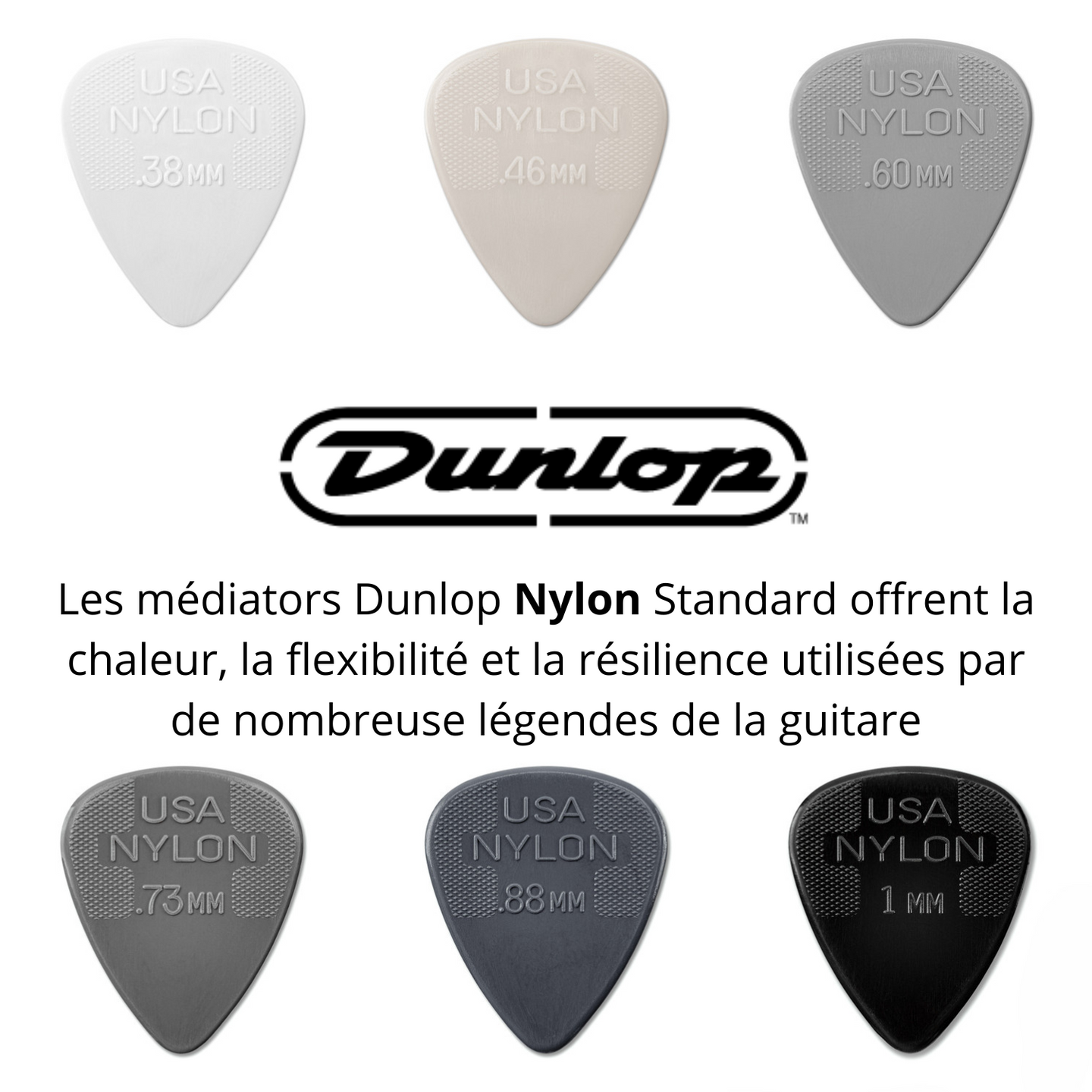 Les médiators Dunlop Nylon Standard offrent la chaleur, la flexibilité et la résilience exploitées par de nombreuses légendes de la guitare pour enregistrer certains des tubes les plus emblématiques du rock 'n' roll.