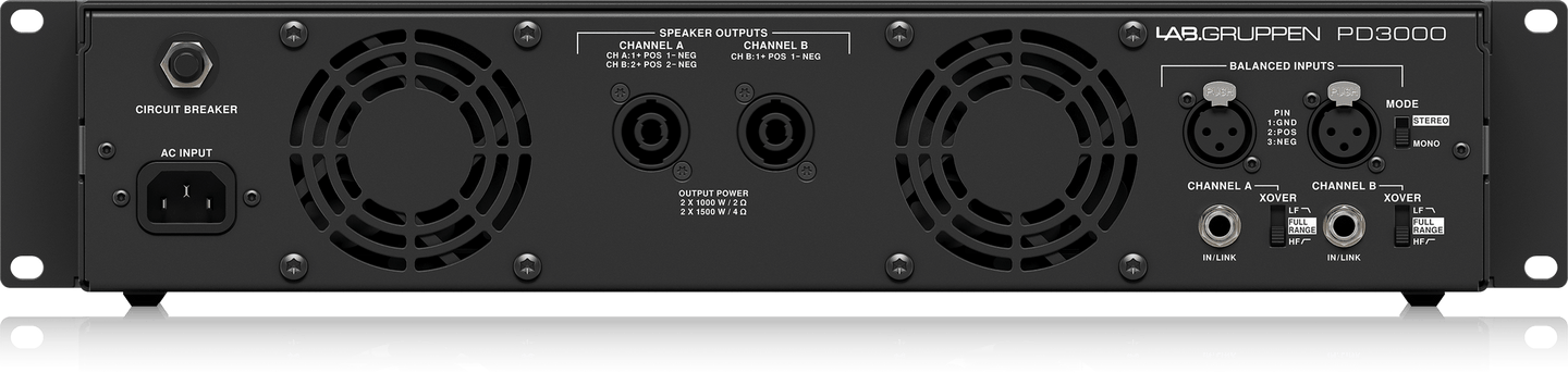 Le PD3000 est un amplificateur à deux canaux délivrant 2 X 1500 W de puissance pour les applications de son live d'entrée/moyenne gamme. Les amplificateurs de la série PD utilisent notre étage de sortie unique IDEEA de classe D qui est parfaitement adapté à la puissance de sortie nominale. Pour plus de flexibilité, chaque canal offre une oscillation de tension et une capacité de courant suffisantes pour piloter des charges dans n'importe quelle impédance sans aucune configuration supplémentaire. Afin d'avoir de faibles pertes thermiques ainsi qu'une oscillation de tension élevée, la conception est basée sur une sortie pontée en permanence.