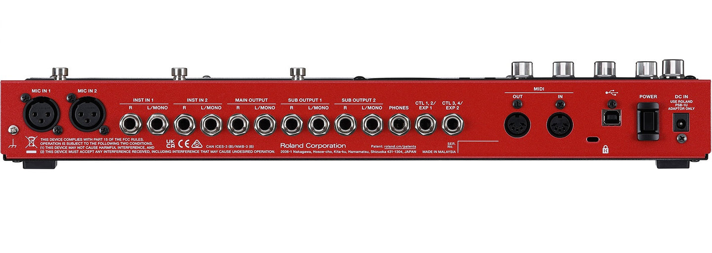 - USB pour la sauvegarde des données, l'import/export de boucles avec BOSS Tone Studio, et l'importation de patterns à l'aide de RC Rhythm Converter