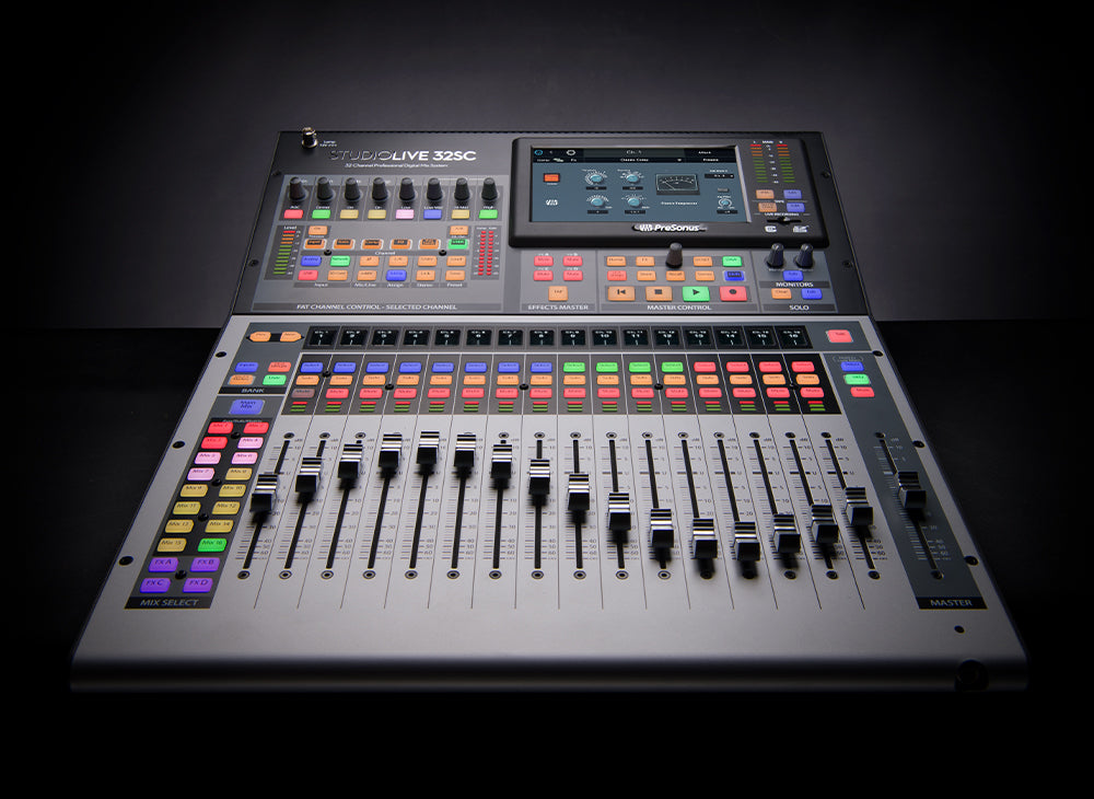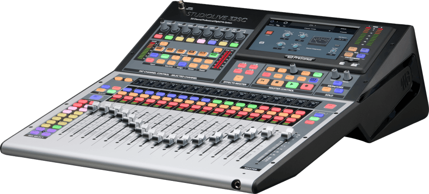 Puissante console de mixage numérique de 40 canaux, logée dans un boîtier portable et rackable, la StudioLive 32SC est une console de mixage numérique compacte qui rivalise avec ses grandes sœurs, notamment compte tenu de son prix. Grâce à l'AVB, elle est facilement extensible : elle se connecte facilement aux consoles de mixage de retour personnelles EarMix 16M pour des mixages sur scène personnalisés et aux boîtiers de scène PreSonus NSB pour des entrées supplémentaires. Les 16 FlexMix de la StudioLive 32SC peuvent être configurés individuellement pour fonctionner comme bus auxiliaires, sous-groupes ou mixages matriciels ; vos possibilités de routage sont presque illimitées. La section de traitement Fat Channel utilise des options de plug-ins extensibles avec un égaliseur vintage et des options de compression classiques sur chaque canal d'entrée et bus de sortie.