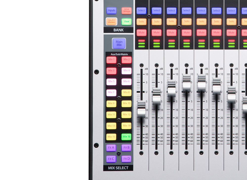 - 24 bus de mixage : 16 FlexMix (configurables en Aux, Matrix ou Sous-groupe), 4 FX Mixes, 4 Sous-groupes