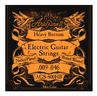 Aria Pro II electric guitar strings are made from nickel plated steel wire wrapped around a hexagonal core.