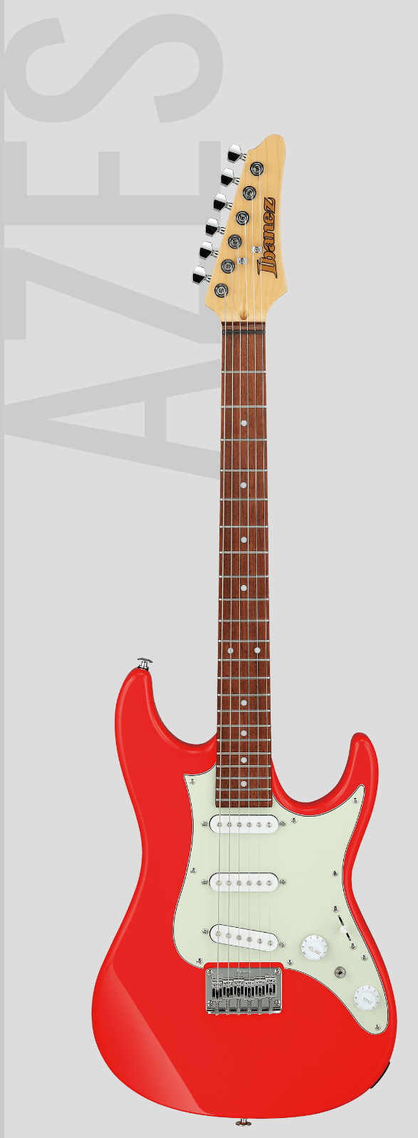 Ibanez est fier de présenter la gamme AZES ou AZ Essentials, qui vient de s'ajouter à sa gamme à succès. La philosophie de cette gamme est d'offrir le son, la polyvalence et la jouabilité de cette célèbre gamme à un plus large éventail de joueurs débutants et intermédiaires. Cependant, les AZ Essentials sont également équipées de fonctionnalités spécifiques à la série, telles qu'une prise de sortie mono-unité, un rayon de touche de 250 mm et des pontets de chevalet ronds Comfort, toutes conçues pour faire du processus d'apprentissage du débutant une expérience simplifiée, agréable et amusante.