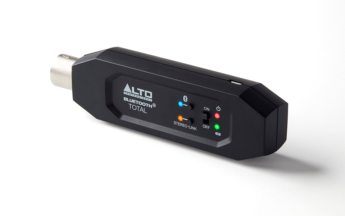 Bluetooth Total est un récepteur Bluetooth rechargeable équipé de XLR qui diffuse l'audio sans fil vers des mélangeurs ou des haut-parleurs amplifiés. Avec Bluetooth Total, vous pouvez rapidement et facilement ajouter Bluetooth à n'importe quelle configuration de son en direct. Branchez Bluetooth Total sur l'entrée XLR d'une table de mixage ou d'une enceinte amplifiée, couplez votre appareil Bluetooth, et c'est tout ! Vous pouvez également relier sans fil deux totaux Bluetooth ensemble pour s'adapter à des configurations d'enceintes plus importantes. Une batterie rechargeable intégrée permet à Bluetooth Total de fonctionner pendant plus de 6 heures. Le Bluetooth Total est un outil précieux dont aucun professionnel de l'audio ne devrait se passer.
