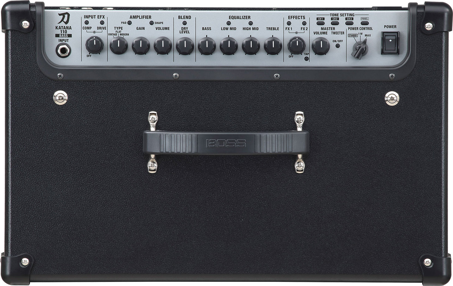 Doté de la même révolutionnaire philosophie de conception que les fameux amplis guitare Katana, le Katana-110 Bass dispose de sons premium et de caractéristiques évoluées, parfaitement adaptés aux besoins des bassistes exigeants. Les trois caractéristiques d'ampli uniques et les effets BOSS intégrés proposent une large gamme de sonorités, produites par un ampli de puissance de (110W PEAK) 60 watts RMS de classe AB, un baffle de 10 pouces (25 cm), et un tweeter avec commutateur On/Off. L'EQ complet et la connectique polyvalente, entre autres, permettent au Katana-110 Bass d'envoyer du gros son en toute situation, de la scène au studio, en passant par les séances de travail à la maison.