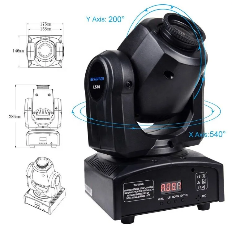 Mode de contrôle: son / lecture automatique / DMX / Master-salve DMX CH: 9/11 Durée de vie: 5000-10000H