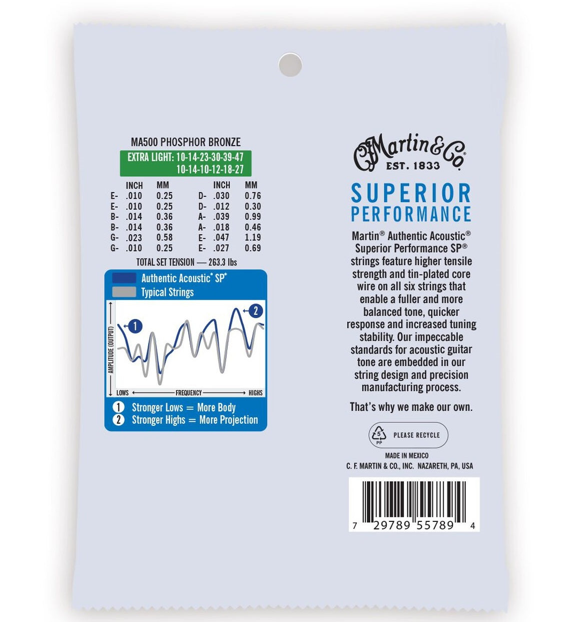 | Extra Light 12-String | .010/.010 | .014/.014 | .023/.010 | .030/.012 | .039/.018 | .047/.027 | 263.3 | MA500 |