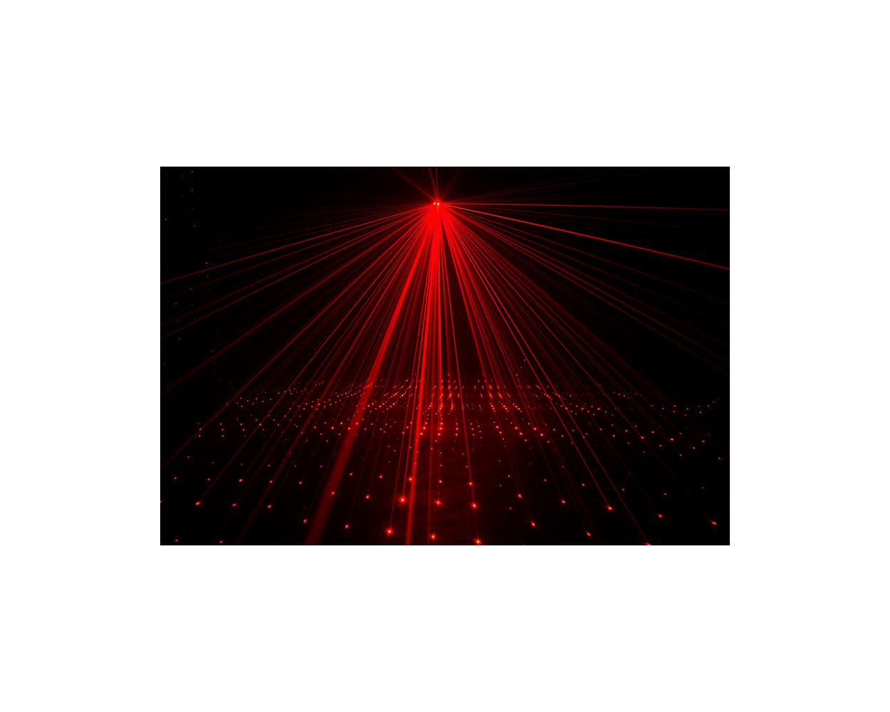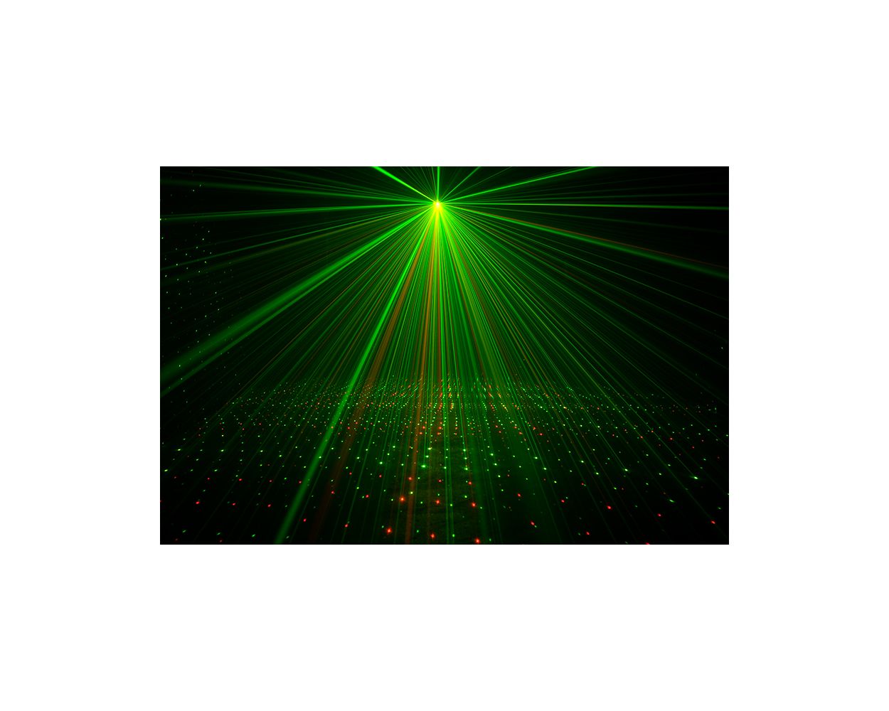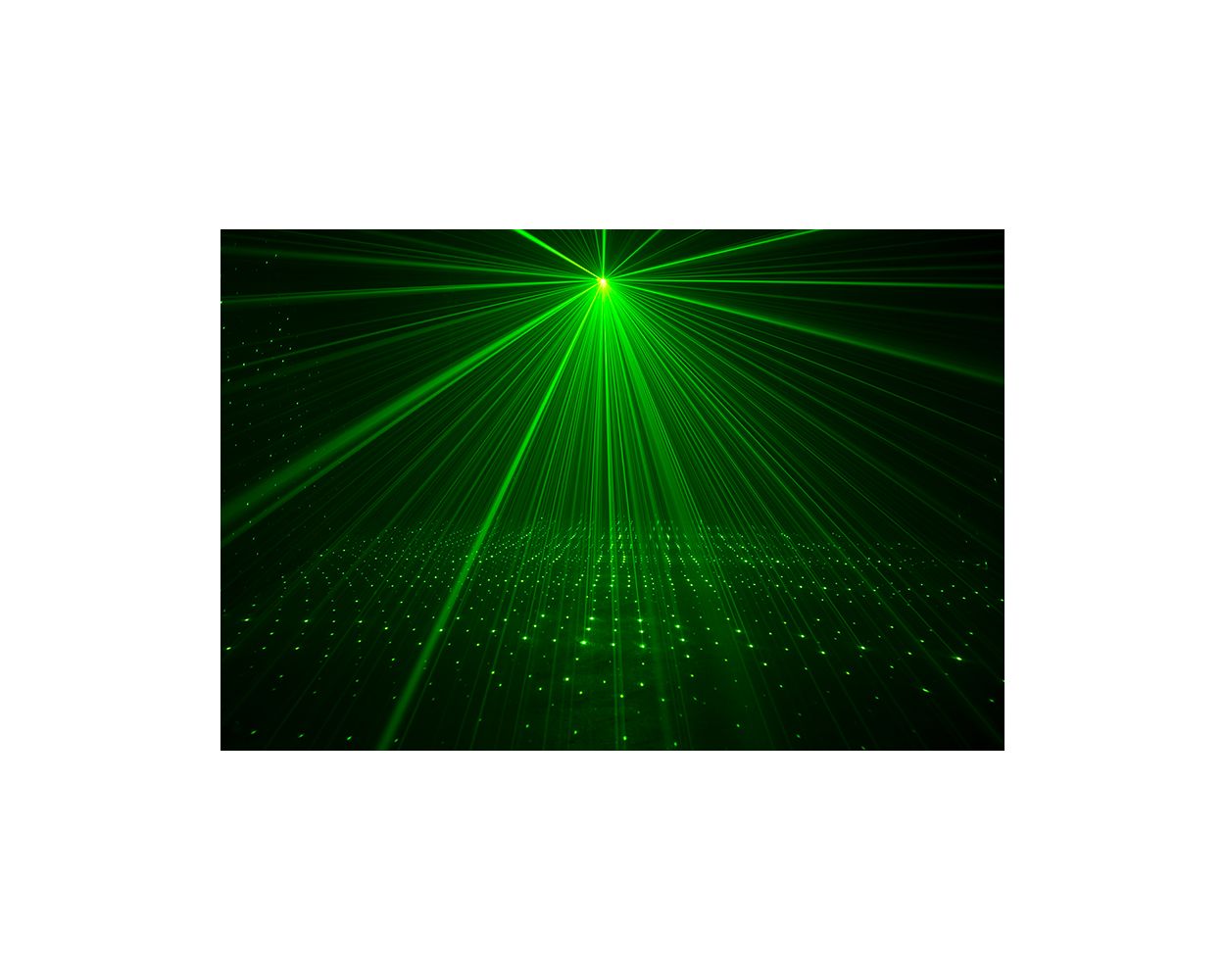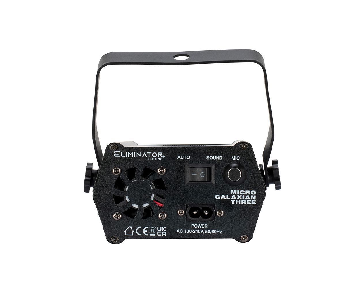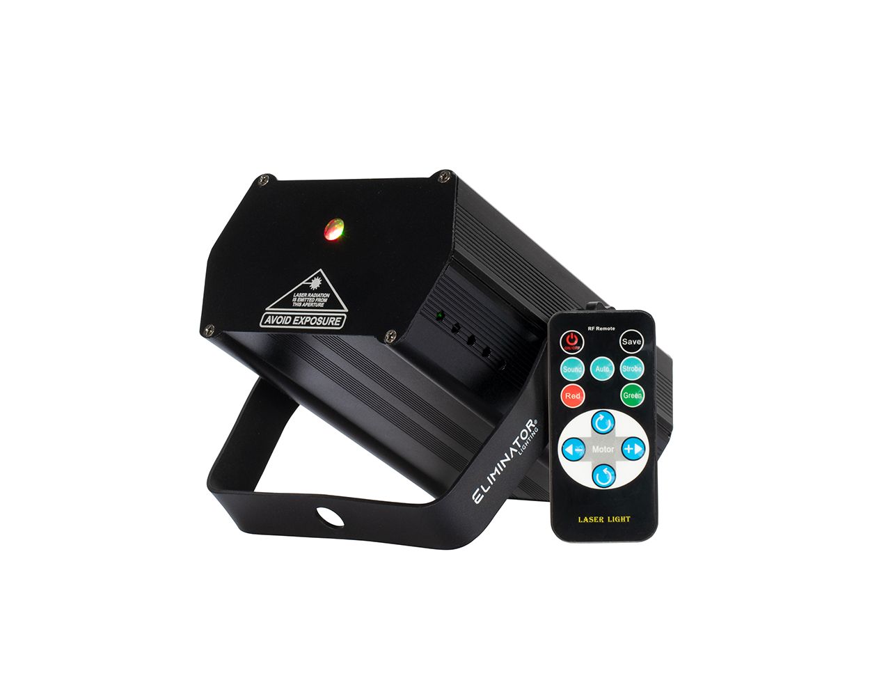 Illuminez vos soirées avec le laser Eliminator Lighting Micro Galaxian Three. Ce laser vert et rouge produit plus de 200 faisceaux pouvant être projetés sur un mur, un plafond ou une piste de danse. Télécommande infrarouge sans fil incluse.