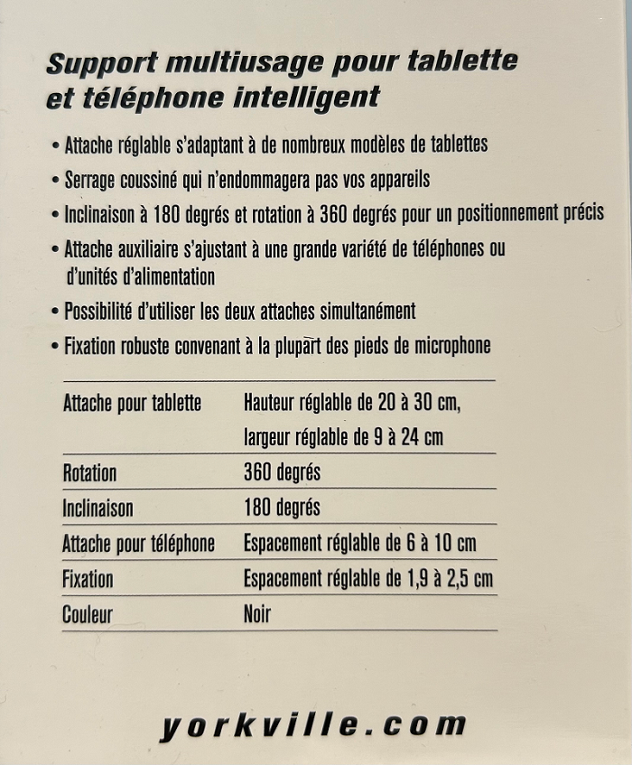 • Attache réglable s’adaptant à de nombreux modèles de tablettes