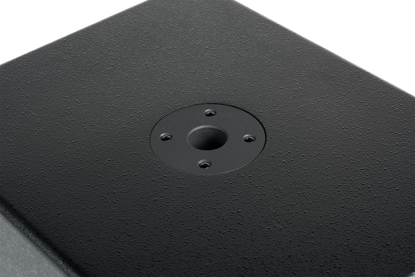 - Coffret en MDF robuste, renforcé à l'intérieur, avec port avant et embase pour poteau de 36 mm