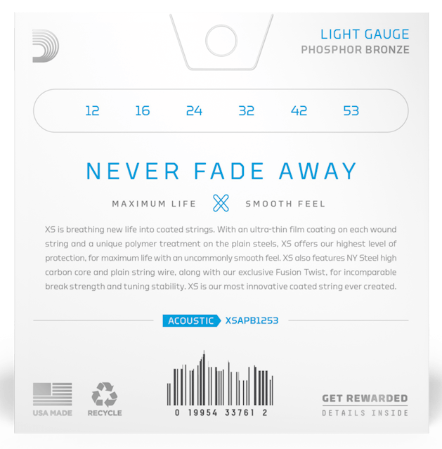 Les cordes D'Addario XS Acoustic Phosphor Bronze combinent notre alliage acoustique le plus populaire avec notre technologie de revêtement de cordes la plus avancée, résultant en un son clair, une sensation douce et une stabilité d'accord supérieure - le tout avec la plus longue durée de vie possible des cordes. Avec son revêtement de film ultra-mince sur chaque corde enroulée et un traitement polymère unique sur les aciers bruts, XS offre notre plus haut niveau de protection pour une durée de vie maximale. XS comprend également un noyau à haute teneur en carbone NY Steel et un fil de corde simple, ainsi que notre exclusif Fusion Twist, pour une résistance à la rupture et une stabilité de réglage incomparables. XS est le cordage enduit le plus innovant que nous ayons jamais créé. Ne vous évanouissez jamais !